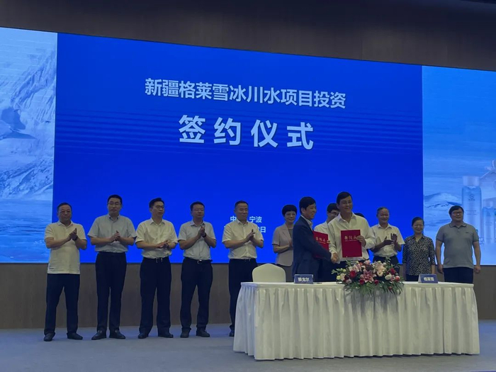 8月2日,新疆格莱雪冰川水项目投资签约仪式在雅戈尔集团举行。甬潮创业、雅戈尔集团、以镜企业管理合伙企业分别与新疆格莱雪冰川水公司进行投资签约。
