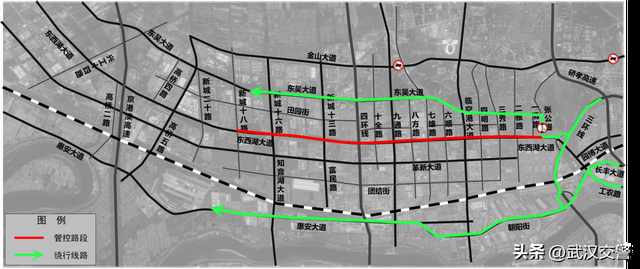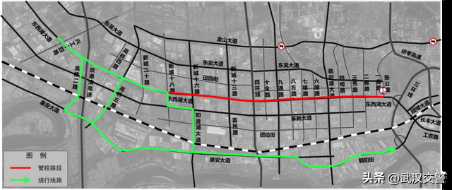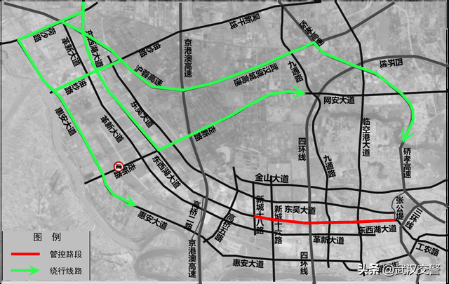 原东西湖区经东西湖大道前往市内方向的载客汽车、载货汽车可绕行惠安大道、走新路、沪蓉高速、武汉绕城高速、硚孝高速等周边道路。