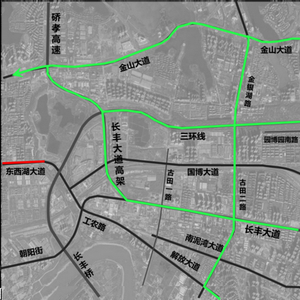 原市内经东西湖大道前往东西湖区方向的载货汽车可绕行三环线、工农路、长丰大道、朝阳街、惠安大道等周边道路。