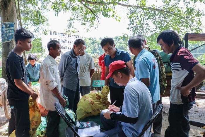 八月,正是竹笋砍收的季节,在上思县公正乡大吉屯村口古榕下,附近村民带着刚刚砍收回来的新鲜竹笋来到这里集中售卖,现场洋溢着丰收的喜悦。公正乡那齐村驻村第一书记梁明和驻村工作队员们一边检查竹笋质量一边忙着给村民统计,这是他们成立的那齐村股份经济合作社正在附近村屯收购竹笋。