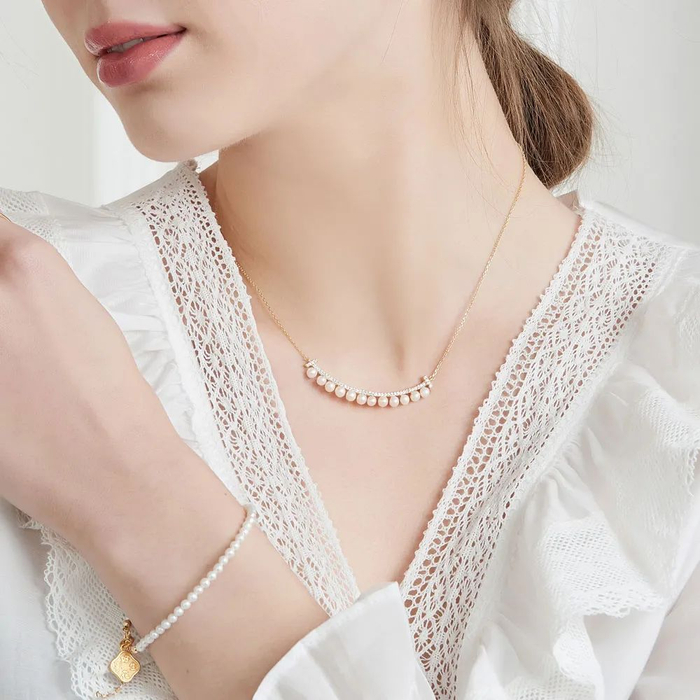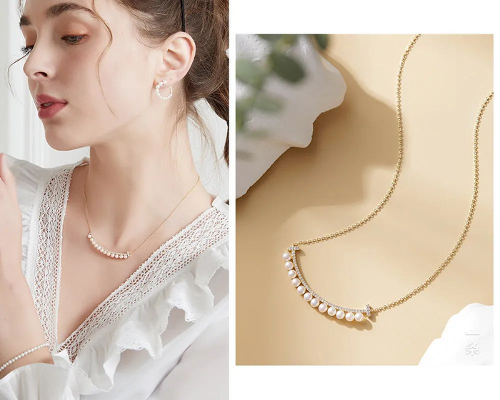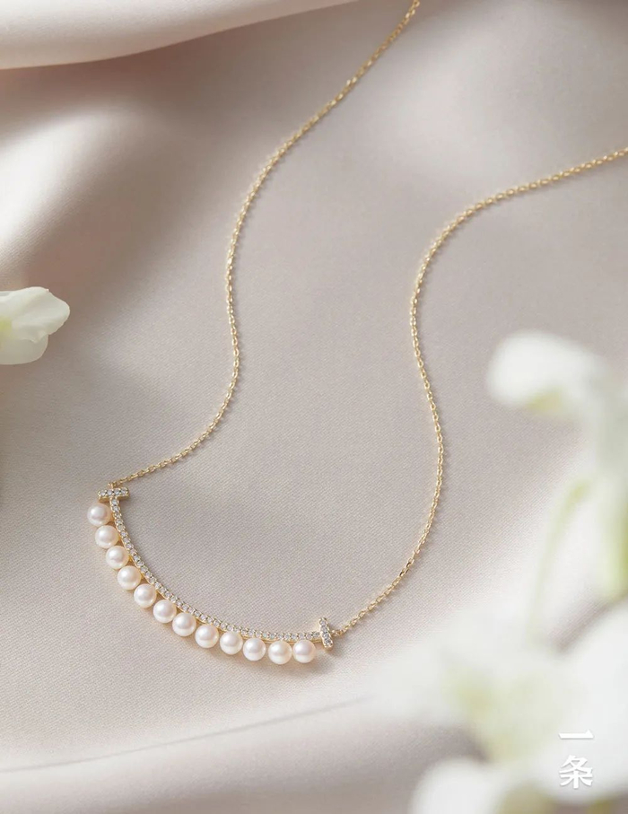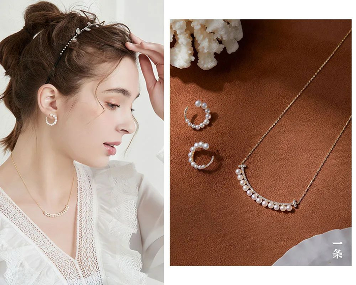 点缀的那一排闪闪锆石,散发出晶莹的光彩,与莹润的珍珠相映成辉。
