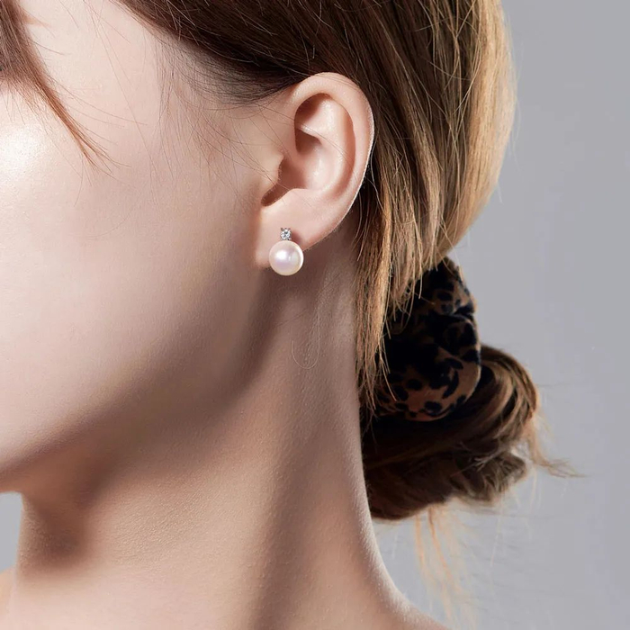 珍珠的上方,还镶嵌有小颗的璀璨锆石,戴在耳畔很衬肤色。