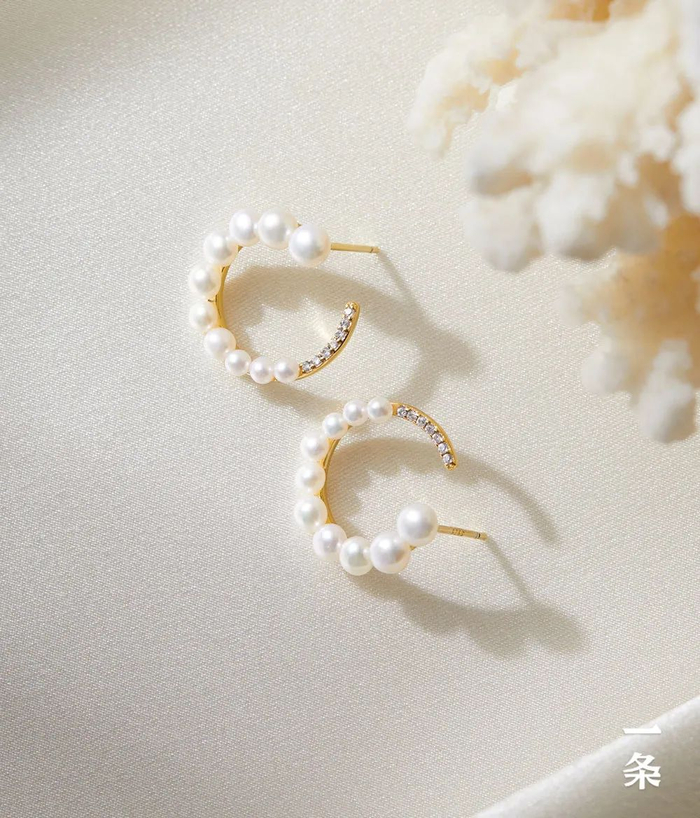 莹润珍珠做“月亮”,璀璨锆石做“星星”,谁戴谁美的气质耳环