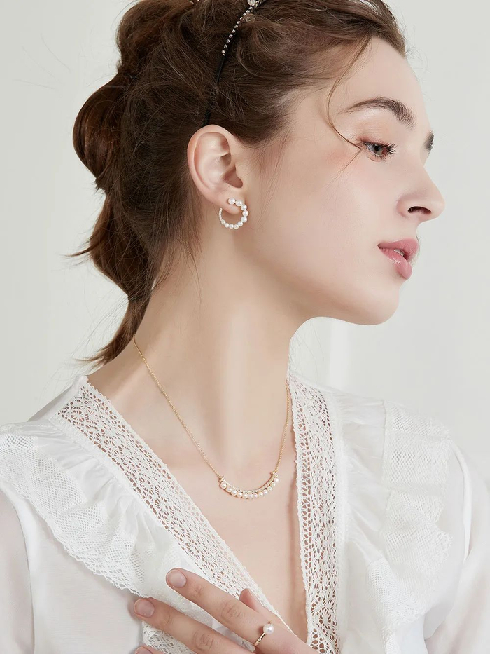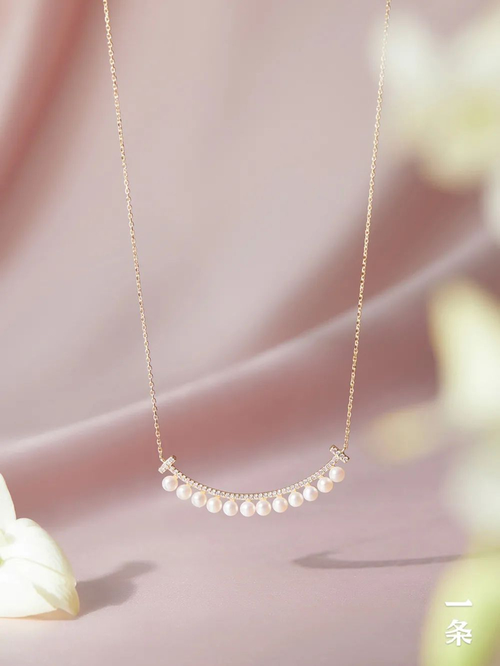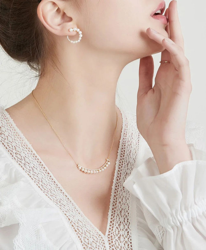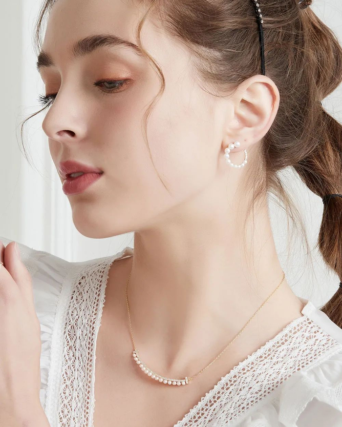 CLORIS YING还有一款笑脸造型淡水珍珠项链,既优雅又不失活力,和上面的“众星拱月”耳环一起戴会很好看,也推荐给你。