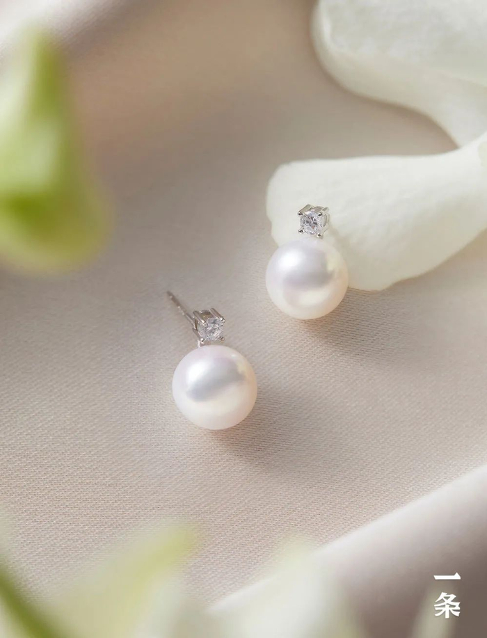 经典款9mm淡水珍珠耳钉,现一条生活馆有售▼