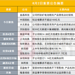 上海凤凰公告,控股股东金山区国资委及其100%控股的金山资本集团自2022年5月27日至2022年8月2日集中竞价交易累计增持1%股份;本次权益变动后,金山区国资委直接和间接持有本公司股份的比例由22.7743%增加至23.7743%。