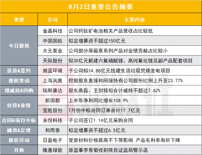 募资150亿元 1400亿航空龙头拟定增引进22架飞机项目|盘后公告集锦