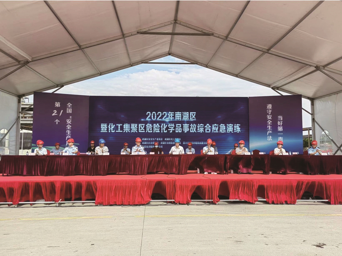 此外,南湖区修订完善了化工集聚区危险化学品事故应急救援预案并定期演练,同时完善化工集聚区应急救援物资库建设。对照化工集聚区隐患排查治理,对标对表,查找问题,制订整改提升方案;合理优化园区布局,推动非化工企业搬迁;加快建设危化品车辆专用停车场、气体防护站等配套功能设施,进一步完善集聚区应急响应中心智慧监管平台建设,实现智能一体化安全管理。