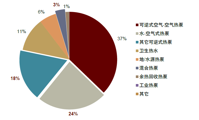 注:水-空气式热泵,其他可逆式热泵,工业热泵均属于空气源热泵类型