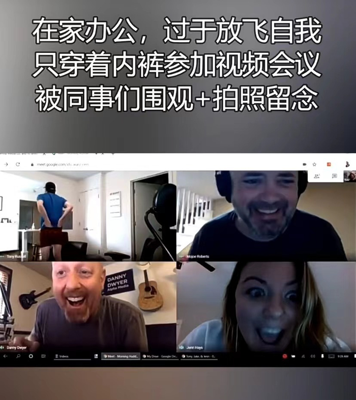 一个美国小哥跟同事开完视频会议,然后他忘了关摄像头就站起身……损友同事们一边在会议里大声喊他一边疯狂截图!