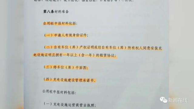 据了解,南宁市住建局出台的《南宁市既有居民小区的汽车充电设施建设管理工作细则》中规定,个人自用充电桩报装资料包括:申请人有效身份证明、申请人车位产权证明或一年以上(含一年)使用证明、车位平面图,以及充电设施建设管理的承诺书。
