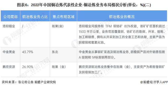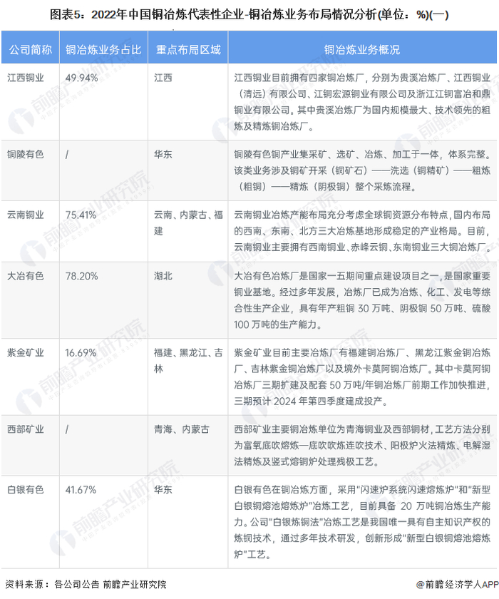 铜冶炼产业代表性企业业务概况