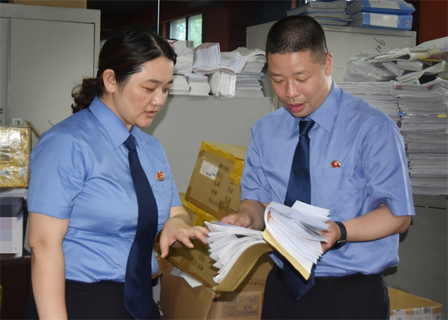 检察官现场核对曹某铭集资诈骗案涉案财物凭证