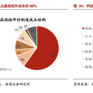 相较于晶硅组件,钙钛矿组件的产业链构成较为简单,包括电极材料、人工成本、能源动力等。但根据浙商证券的统计,钙钛矿组件中的玻璃及其他封装材料成本比重更高,达到32%。