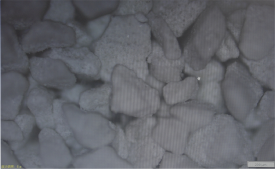 显微镜下放大200倍莫来砂预铺防水卷材颗粒保护层效果