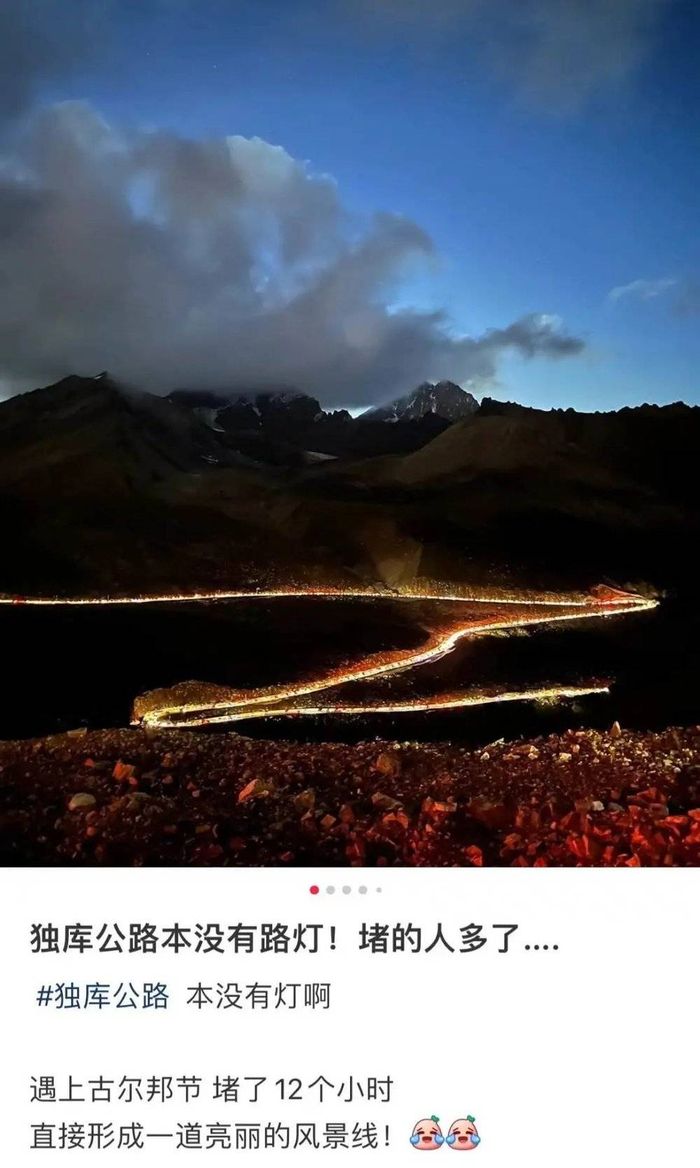 但她感慨,与那些被堵在独库公路十几个小时,手机没信号、不能上厕所、甚至车子陷进泥石流里的游客相比,自己已经相当幸运了。