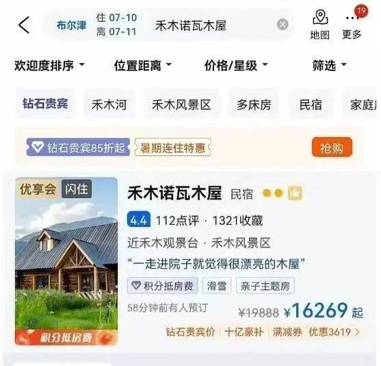 禾木木屋民宿涨至上万元“天价”。来源 / 小红书