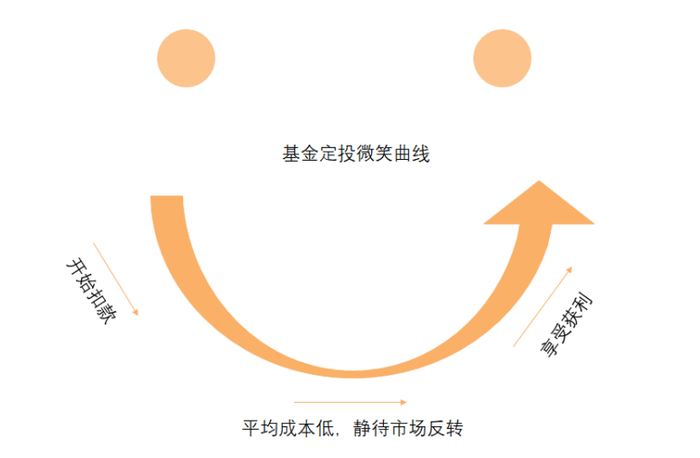 说到定投就不得不提起起定投的“微笑曲线”。能否形成“微笑曲线”与基金在一段时间内的走势息息相关。简单来说,当市场呈现先跌后涨的态势时,通过定投在下跌的过程中不断有规律地买入份额,而后在上涨过程中依靠较低的持仓成本获益,最终就能达到提高盈利的效果,画出一道“微笑曲线”。