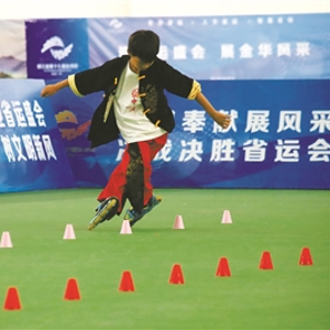 7月26日,本届省运会轮滑比赛场地传来好消息——在当天下午举行的花式绕桩(男子乙组)比赛中,来自江北实验中学的宁波运动员蔡旭磊获得金牌,这是宁波代表团在开赛后获得的首枚金牌。此外,他的同学洪语瞳获得女子乙组的牌。