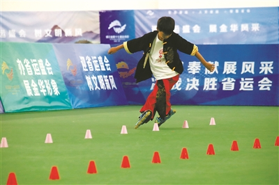 ◀本届省运会轮滑项目比赛场景。 (林海 摄)
