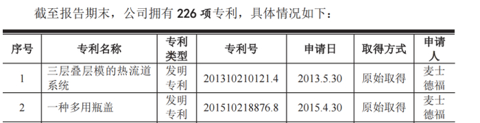 截至最新一版招股说明书签署日,麦士德福共拥有两项发明专利,该公司最近一次发明专利的申请日为 2015 年 4 月。也就是说,从2015年4月至今,麦士德福已经超过 7 年内没有新的发明专利。