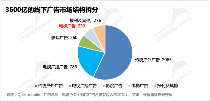 在线下广告3600亿的市场规模中,电梯广告市场规模并不算高(2021年6.4%),但凭借互联网无法取代的相对稳定流量,成为近几年线下广告最后一片还未被瓜分的净土。
