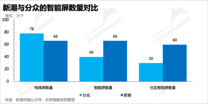 也就是说,新潮未来的战略会避开目前分众有垄断优势的商务楼宇梯媒,而是更多押注在社区梯媒身上。从“直面厮杀”到“割据为王”,可以说新潮的新战略对分众商务楼宇基本盘影响有限,但也必须承认,新潮等同行的存在,也确实挤压了分众未来潜在的收入增长空间,尤其是社区梯媒上。