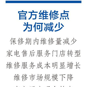 四是产品企业对一些低价产品采取以换代修模式,首发维修产品均走物流,不再设立维修网点,小家电产品尤其明显。