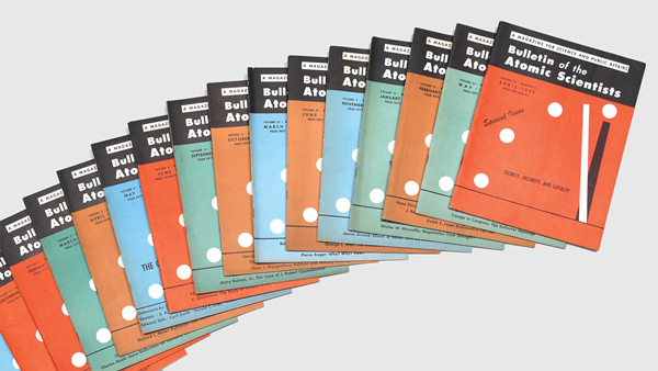学术期刊《原子科学家公报》(Bulletin of the Atomic Scientists)关注新科技对人类发展所造成的安全威胁,其最知名的项目是设立了虚构的末日之钟。Courtesy of Peter Harrington