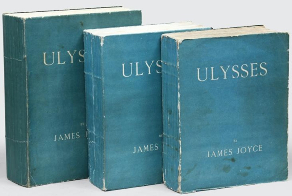 今年正巧是詹姆斯·乔伊斯的代表作《尤利西斯》(Ulysses)出版一百周年。《尤利西斯》被视为意识流小说的代表作,是现代文学的经典,此书当年被英美列为禁书,首版是由巴黎莎士比亚书店出版,自美国移居的莎士比亚书店主人丝薇雅·毕奇,在回忆录中记载了她与乔伊斯的交往与曲折的编辑过程。1922年的首版限量一千本,流水编号,前一百号以上乘的荷兰手工纸印制,乔伊斯签名,当时定价350法郎,之后150号以法国制的优质手工纸印刷,定价250法郎,最后750号以一般手工纸印刷,定价150法郎。这三种版次的《尤利西斯》是诸多乔伊斯迷的最爱,如今每册单价可由数万到数十万美元不等,彼得·哈林顿同时拥有四册(编号74,174,811,825),涵盖三种版本,手笔之大,令人折服,他们带了两册到古书展,两册留在书店。