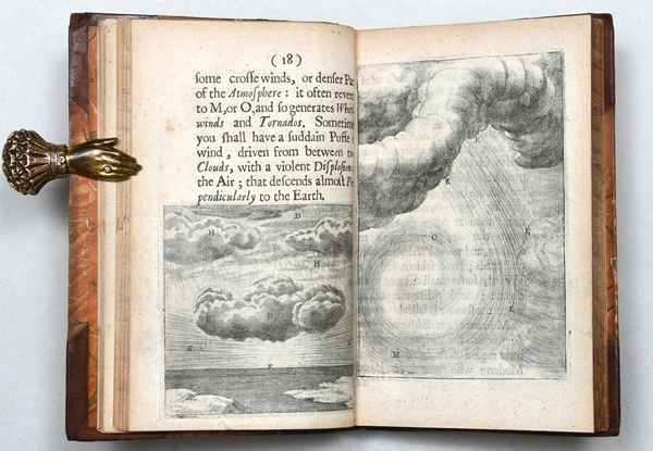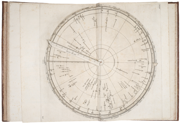 如果要说贵,全会场最高单价的一套书,是伦敦以经手古地图著称的丹纽·克罗奇古书店(Daniel Crouch Rare Books)带来的十七世纪地图集《海洋之秘》(Dell’arcano del mare),定价75万英镑。《海洋之秘》是第一部世界海洋地图集,也是首先使用麦卡托投影法的地图,最早展示了磁偏差,第一个显示洋流和盛行风, 第一个详述大圈航法(地球表面任意两点的最短距离为大圈弧线)的优点。《海洋之秘》共分六大部,含146张地图,两百余张版画,外加数十个可手动旋转的纸板星历表转盘,里面数百幅精美的铜版画与地图,耗时十二年制作,用掉了五千磅的铜制版,于1646-1647年初版,1661年再版。地图师罗伯·达德利(Robert Dudley, 1574-1649)是英国一位伯爵的私生子,热爱探险与航海,精于导航与数学,因为无法在英国取得正式爵位,自我流放至意大利佛罗伦萨,替数任塔斯卡尼大公服务,曾任工程师与海军顾问,并获得支持出版此套扬名立万的《海洋之秘》,打破当时优良地图(集)都是出自荷兰人的传统。
