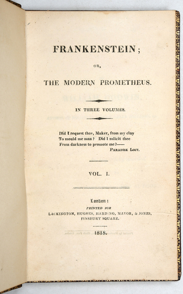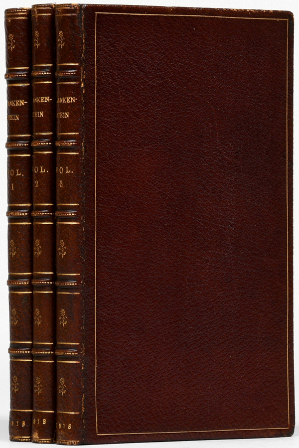 受疫情影响,这届古书展的规模较往年小了些,但还是有许多重量级的国际书商,展品依然精彩。单单在英国彼得·哈林顿古书店(Peter Harrington Rare Books)的摊位就能耗上一整天,玻璃橱柜里摆了1818年首版的三卷本《科学怪人》(Frankenstein),这部天才女作家玛丽·雪莱的旷世名著,早先被几家出版商退稿,初版印行仅五百部,书上还未挂名,作者成了无名氏,再版才正名。但此书日后逐渐受欢迎,并被视为科幻小说的先驱,原作无数次被改编成舞台剧、电影、广播剧、电视剧,还启发了不少文学家、音乐家、艺术家的创作灵感;彼得·哈林顿展出的这部首版《科学怪人》定价40万美元,之所以如此“廉价”,主因是封皮重新装帧过,并少了原来的半书名页(half-title page)与后面的广告页;现今藏家偏爱藏品保持原貌,因此去年9月14日纽约佳士得公司拍卖一部原始装帧、书况甚佳的首版,成交价会飙到117 万美元,创下了女性作家出版品的最高拍卖纪录,比同期拍卖的莎士比亚剧作集第二对开本的成交价(40万美元)高出数倍。