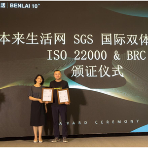 据了解,ISO 22000食品安全管理体系标准,是国际标准化组织发布的最有影响力的标准之一,适用于食品链中各环节的组织;BRCGS S&D即仓储与运输全球标准(BRC Global Standard for Storage & Distribution)是全球食品安全倡议组织(GFSI)认可的标准之一。本次认证代表着本来生活网在食品储存和销售环节建立起有效运行的标准化管理模式,为食品质量和安全管理提供了有力保障。