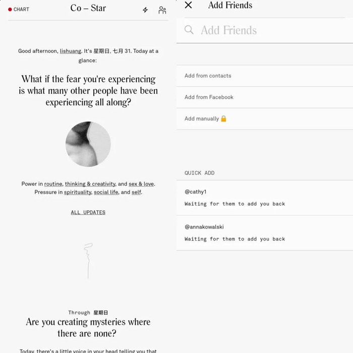 Co–Star 主页;“Friends”页