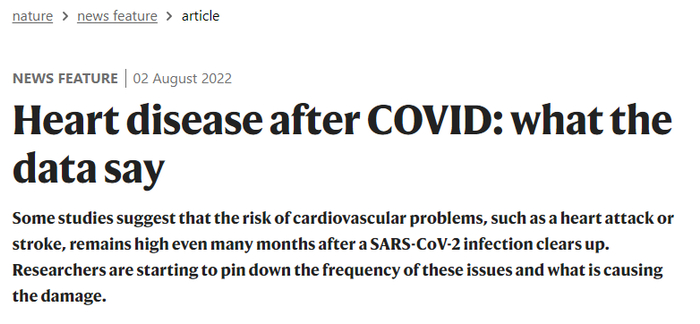 财联社8月3日讯(编辑 周子意)国际科学顶刊《自然》杂志8月2日发表文章指出,研究表明,即使在新冠感染治愈后的几个月,患上心血管问题的风险也会很高,例如心脏病发作、中风等。