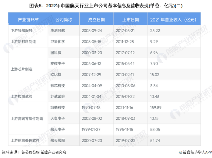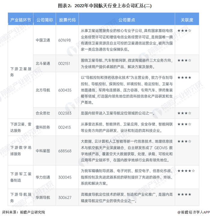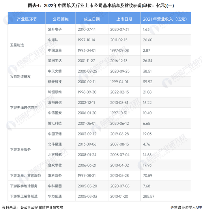 行业主要上市公司:航天科技(000901)、中天火箭(003009)、中国卫星(600118)、中海达(300177)、盟升电子(688311)等。