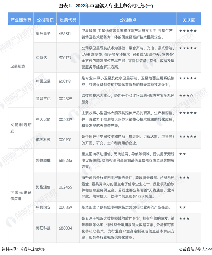 1、中国航天行业上市公司汇总