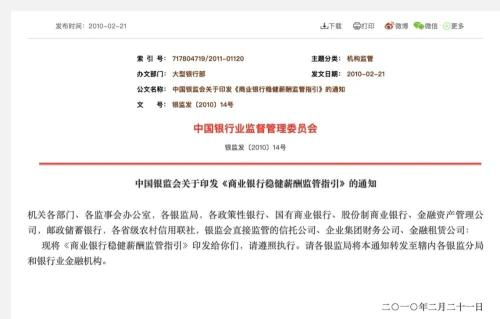 银行业此前已有限薪令