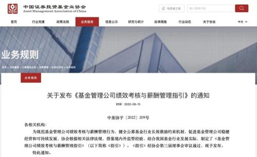 2022年6月,中国基金业协会发布了《基金管理公司绩效考核与薪酬管理指引》,为规范基金管理公司绩效考核与薪酬管理行为, 健全长效激励约束机制,促进基金管理公司稳健经营和可持续发展。