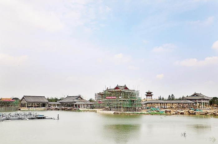 各大城市展园也在火热建设中,有的开始建筑彩绘和装饰,有的正进行砌山造景,营造园林。这13个城市展园,既有江南园林也有城墙府院,既有堆山埋水又有荷塘莲池,建筑各有特色,院落风情有别。尤其是沧州展园,紧邻中心湖区,仿明清式的园林景观建筑已初步呈现,沧州书院、浣花轩、凝翠楼、画舫船……亭台楼宇间,庄重而雅致,在城市展园中尤其亮眼。沧州展园中,还有一座八角亭,建于假山之上,登高远眺,各城市展园的景观尽收眼中。
