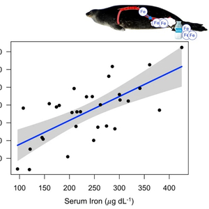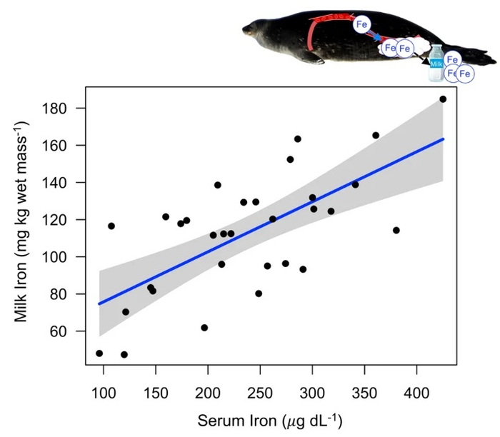 美国伍兹霍尔海洋研究所科学家在2010—2017年期间对繁殖期与非繁殖期雌海豹进行了监测,以此研究哺乳对后代的益处以及给哺乳雌性带来的相关损失。他们分析了这些雌海豹的血液和乳汁成分,以及潜水行为的相应变化。团队发现,有幼崽的雌性在哺乳期的铁转移指数会升高,而非繁殖期雌海豹就没有这种变化。繁殖期的雌海豹会把铁从肝中转移至血液中,再到乳汁中,这会减少它们自己的铁储备。这个过程产生的乳汁的含铁量最高能达到陆栖哺乳动物的100倍。