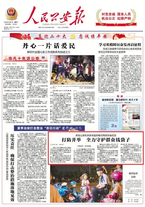 夏季治安打击整治“百日行动”开展以来,全国各地公安机关坚持打防并举,强力推进电信网络诈骗犯罪专案攻坚、专项打击和预警防范,切实维护人民群众财产安全和合法权益。