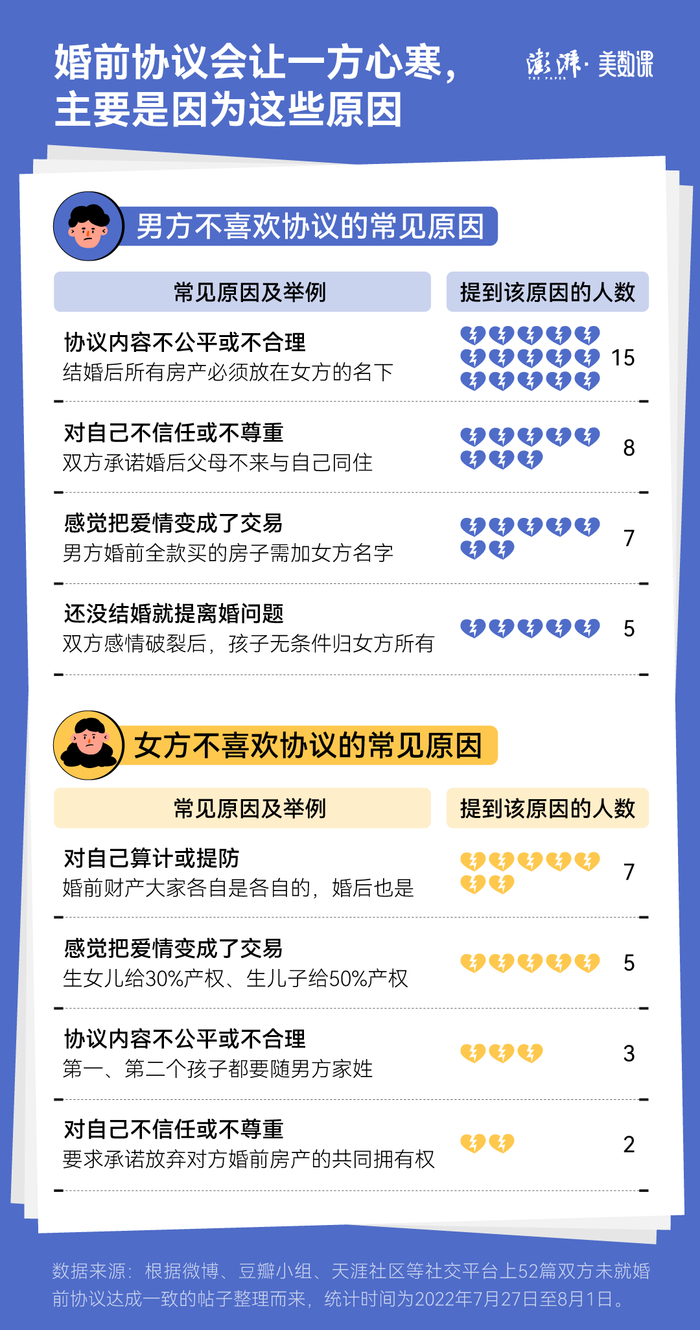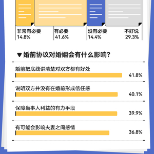在各类社交平台上,也会看到一些因婚前协议而产生抵牾的故事,有的感情甚至因此而告吹。