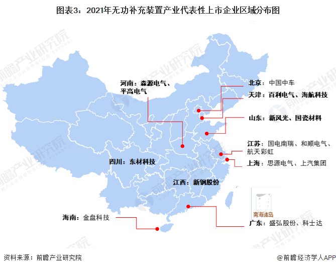 从代表性企业分布情况来看,我国无功补充装置代表企业分布在北京、天津、江苏、山东、上海、广东等沿海省市,以及河南、四川、安徽、江西等内陆省份。