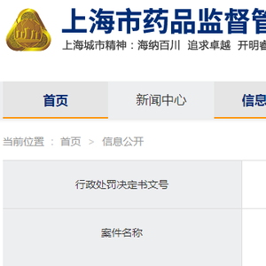 作出处罚的机关名称(全称) | 上海市药品监督管理局 |