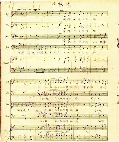 对于今天的年轻人,《抗敌歌》这首歌或许已有些陌生,但在当时,它发出了最早的呼声,是中国最早一首以抗日救亡为题材的歌曲。