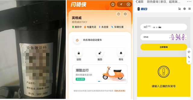 黄女士在新日公众号上输入车架号,也无法获取到相应的防伪信息。车身的激活码却显示为自行车厂商“英格威”。黄女士再次联系该店铺商家,对方随后称该产品是和英格威合作的。