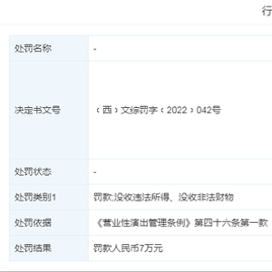 近日,天眼查公开了一则关于陕西唐蒜广告文化传播有限公司的行政处罚令,处罚事由显示该公司在2022年5月4日举办的营业性演出有《营业性演出管理条例》第二十五条禁止情形,其行为涉嫌违法了《营业性演出管理条例》第25条第7项的规定,根据《营业性演出管理条例》第46条第1款的规定,应予处罚,并建议立案调查。西安市文化和旅游局陕西唐蒜广告文化传播有限公司处罚了人民币7万元。该公司为西安脱口秀团队唐蒜铺子的关联公司。