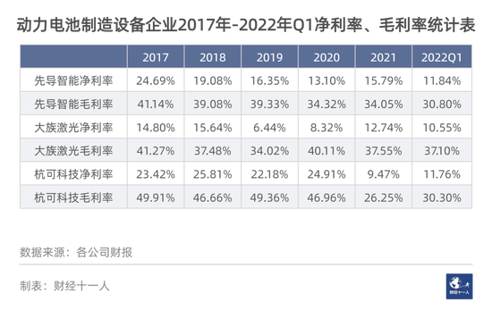 动力电池的设备制造是一条小而美的赛道,技术含量高,行业门槛高,竞争对手进入难度大,因此领先企业的优势比较稳固。从利润表现上看,设备制造企业的利润普遍较高,特别是毛利率,均值接近40%。净利率与毛利率差异较大,主要是因为制造设备正在加速从百万分之一缺陷率(PPM)向十亿分之一缺陷率(PPB)迈进,设备制造企业的研发投入巨大。