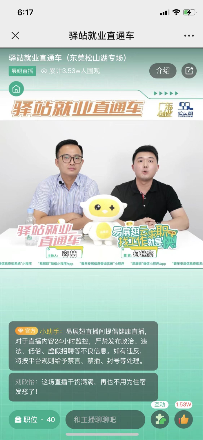 一边投简历、一边“看房”,这样的福利进入广东共青团的“直播间”就能享受!8月4日,广东共青团“驿站就业直通车”首站停靠全国青年发展型城市建设试点东莞市。通过线上直播方式为应届毕业生推介地方人才政策、推荐岗位、介绍住房优惠政策,一站式解决青年就业和住房问题。